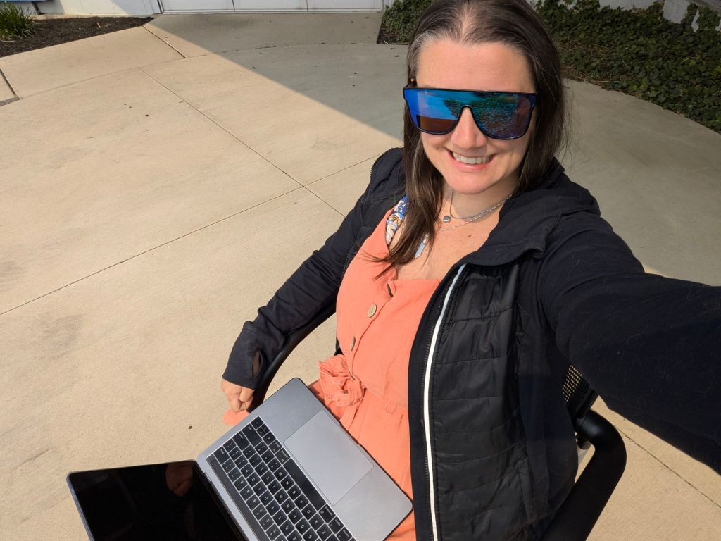 An employee offered me his office chair and carried it outside for me so I could sit in the sun and work on my laptop.